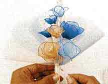Use o mesmo material e prepare as flores para prender na alça e nas laterais da cestinha.