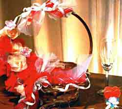 Aposte nas flores de meias de seda vermelha para fazer um belo arranjo e decorar a mesa dos noivos.