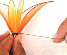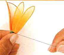 Flores com Beleza: foto 66. Fixe as duas pétalas do tubo modelador nº 2 e, com a linha mágica verde, amarre-as.