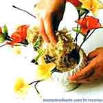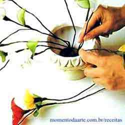 17. Crie um bonito arranjo distribuindo as flores e ramalhetes de forma harmoniosa e espete os cabos na argila.