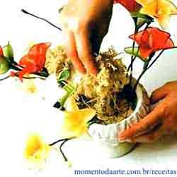 Acabamento:Para completar, dê um toque especial colocando musgo dentro do vaso, compondo um belo arranjo.