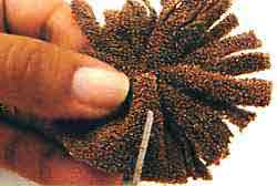 10. Como fazer os Cabelos:Corte a meia bouclê marrom fechada, com 5 cm de comprimento.