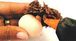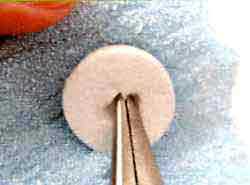 14. Com o estilete, corte a bolinha de isopor ao meio.