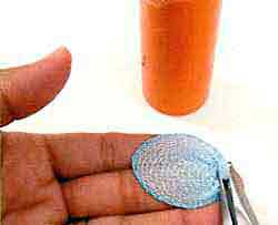 13. Como fazer o Boné:Com o arame azul, faça uma argola no tubo nº2.
