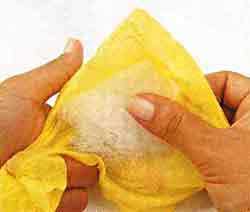Faça uma bola de chumaço de fibra e encape com a meia amarela.