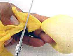 Deixe uma sobra para formar o rabicho e corte o resto.