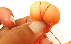 Faça uma bola pequena de fibra e encape com a meia laranja.
