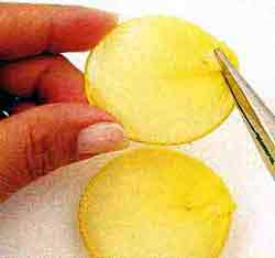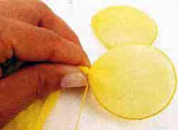 Patinha Fofa: foto 1212. Coloque um pouco de fibra em cada argola e encape com meia amarela.