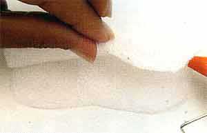 Com cuidado, passe um filete de cola quente em toda a volta da orelha