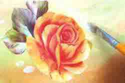 Pintura em Tela Deco: foto 1414. Passe a cola nas figuras recortadas de decoupage, respeitando as marcações e cole as flores com cuidado.