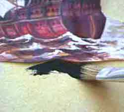 Quadro com Barco: foto 66. Pinte a parte inferior da figura com a tinta preta e o pincel nº 14, para dar o efeito de sombra na parte de baixo do barco