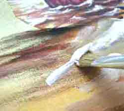 Quadro com Barco: foto 77. Para criar um efeito esfumaçado, passe tinta fosco vermelho escuro sobre a tinta preta com pincel nº 14 e deixe secar.