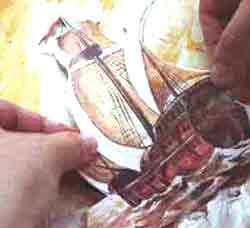 Quadro com Barco: foto 2222. Passe a cola pano sobre a outra figura que irá receber o relevo