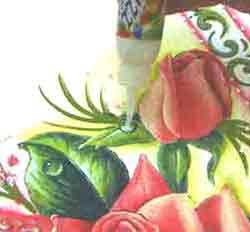 25. Para dar destaque nas faixas, faça pontinhos com a squizz branca, em cima do sombreado nas laterais das faixas.