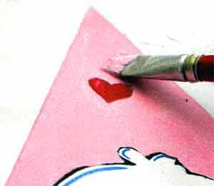 Com um pincel médio e a tinta Rosa Bebe, pinte a faixa central entre as figuras coladas