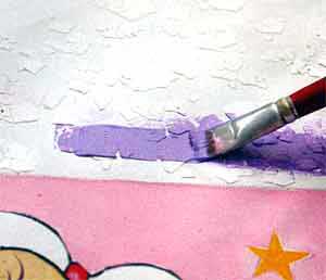 19. Criar o Efeito Craquele Mesclado: Com um pano limpo, dê batidinhas sobre a tinta Lilás para criar um efeito manchado nas cascas