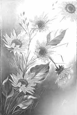 1. Dividir a Tela 70x50cm do Quadro: Com a régua e um lápis, faça 2 riscos verticais na tela com 15cm de cada lado Deixe o meio com 40cm para colocar os girassóis