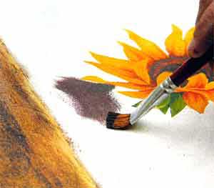Com um pincel médio e a tinta Terra de Siena Queimada