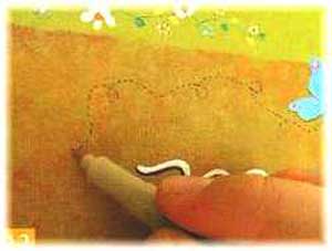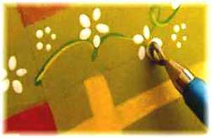 9. Com a tinta verde, desenhe os caules das florzinhas.