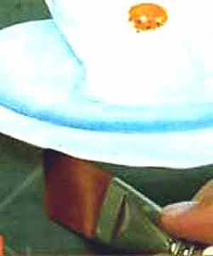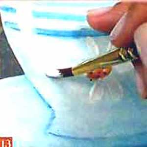 14. Com o pincel chanfrado 3/4 e o marrom escuro, faça a sombra sob o pires.