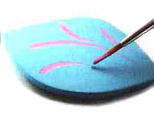 Com o pincel nº 0 e a tinta lilás, faça a ramificação da folha.